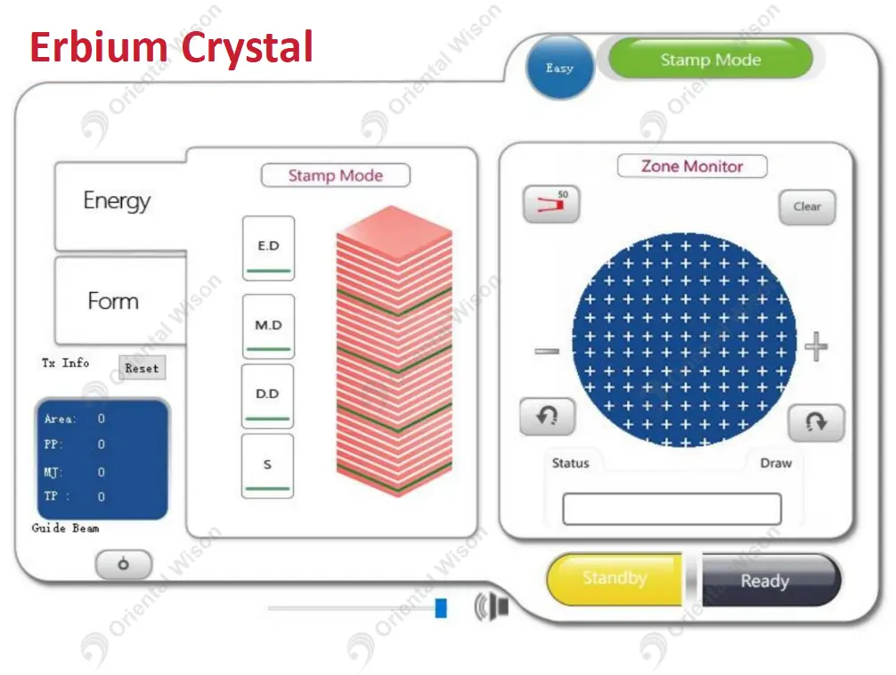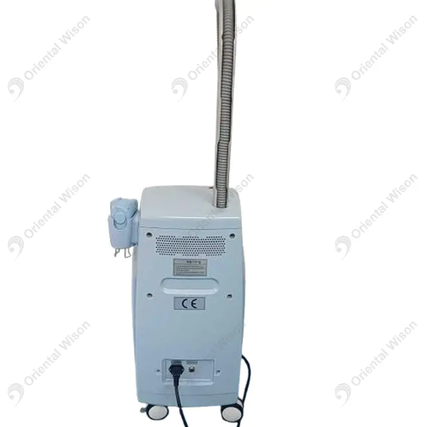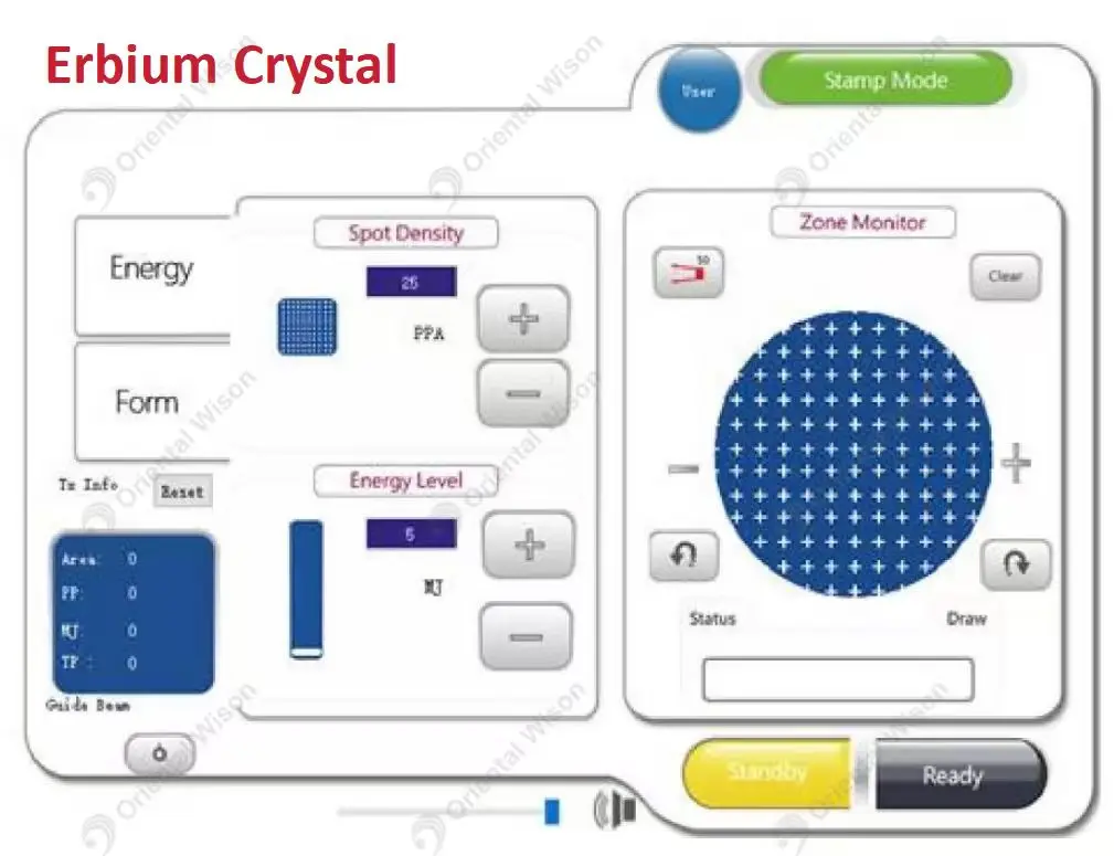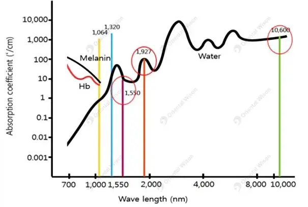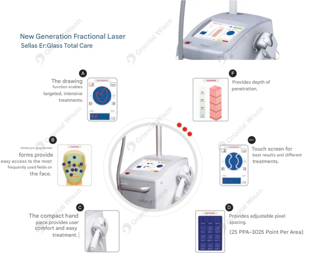 これは、波長 1550nm の非侵襲性 Er: ガラス レーザー システムです。 1550nmの波長は、表皮を通って真皮の奥深くまで熱パルスを照射し、そこで組織内の水分に吸収され、組織内部が高温になります。組織は穏やかに加熱され、皮膚表面は損傷されずに細胞が分解されます。