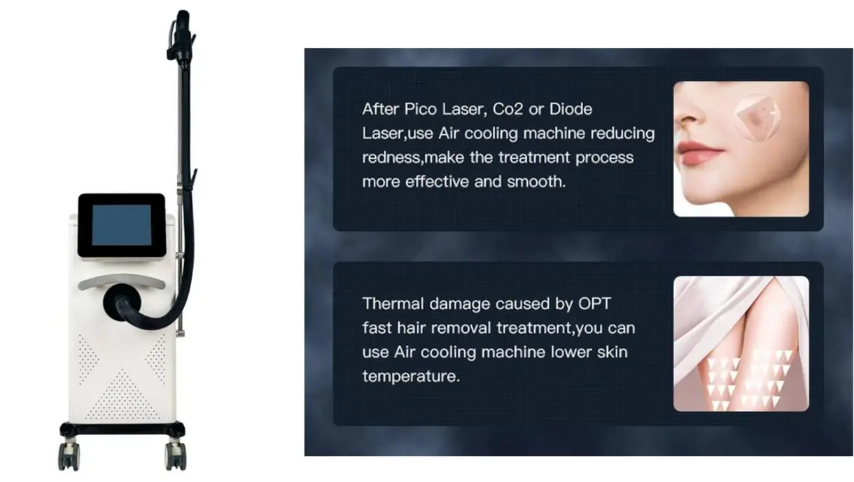 1)標的組織の冷却空気を継続的に供給し、レーザー治療およびIPL治療中の痛みと熱損傷を最小限に抑え、美容注射の一時的な緩和を提供します。