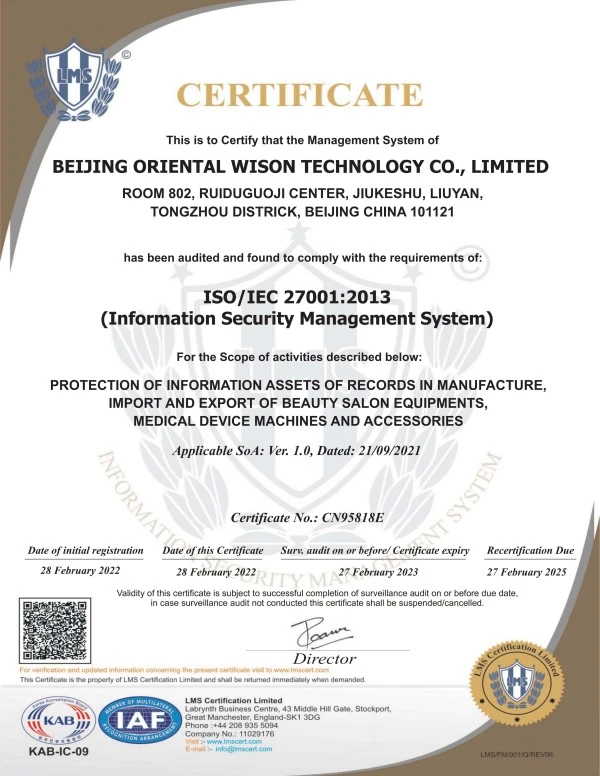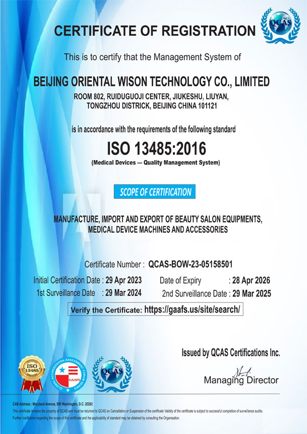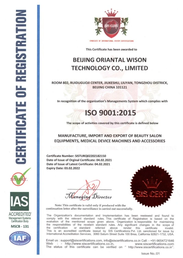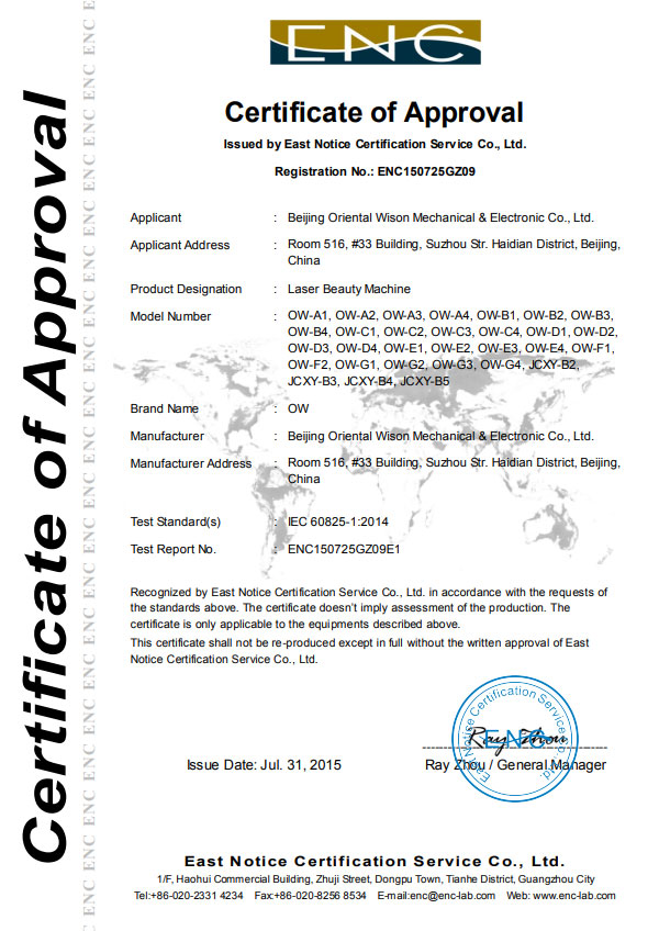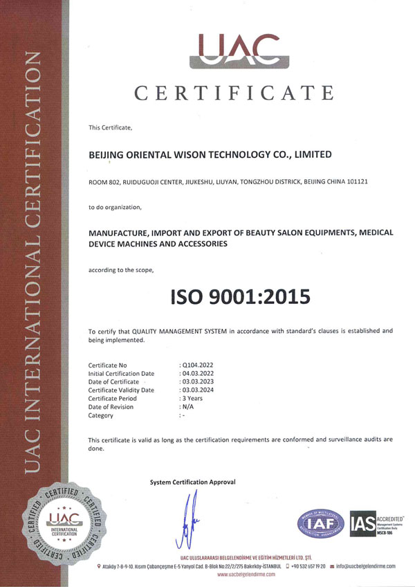 北京東方威尊科技有限公司は2002年以来、美容機器分野に従事してきており、世界中で非常に高い評価を得ています。私たちは美容レーザー美容機器の研究、開発、製造、トレーニング、販売を統合しています。当社の製品ラインは、エルビウム yag レーザー、アレキサンドライト レーザー、ダイオード レーザー、IPL レーザー、ND YAG レーザー、10600nm フラクショナル レーザー、RF マイクロニードル、EMS マシンをカバーしています。また、さまざまな国の強力な代理店にOEMサービスを提供します。当社は欧州CE医療認証、ISO13485:2008、ISO9001:2008国際品質管理システム認証を取得しています。